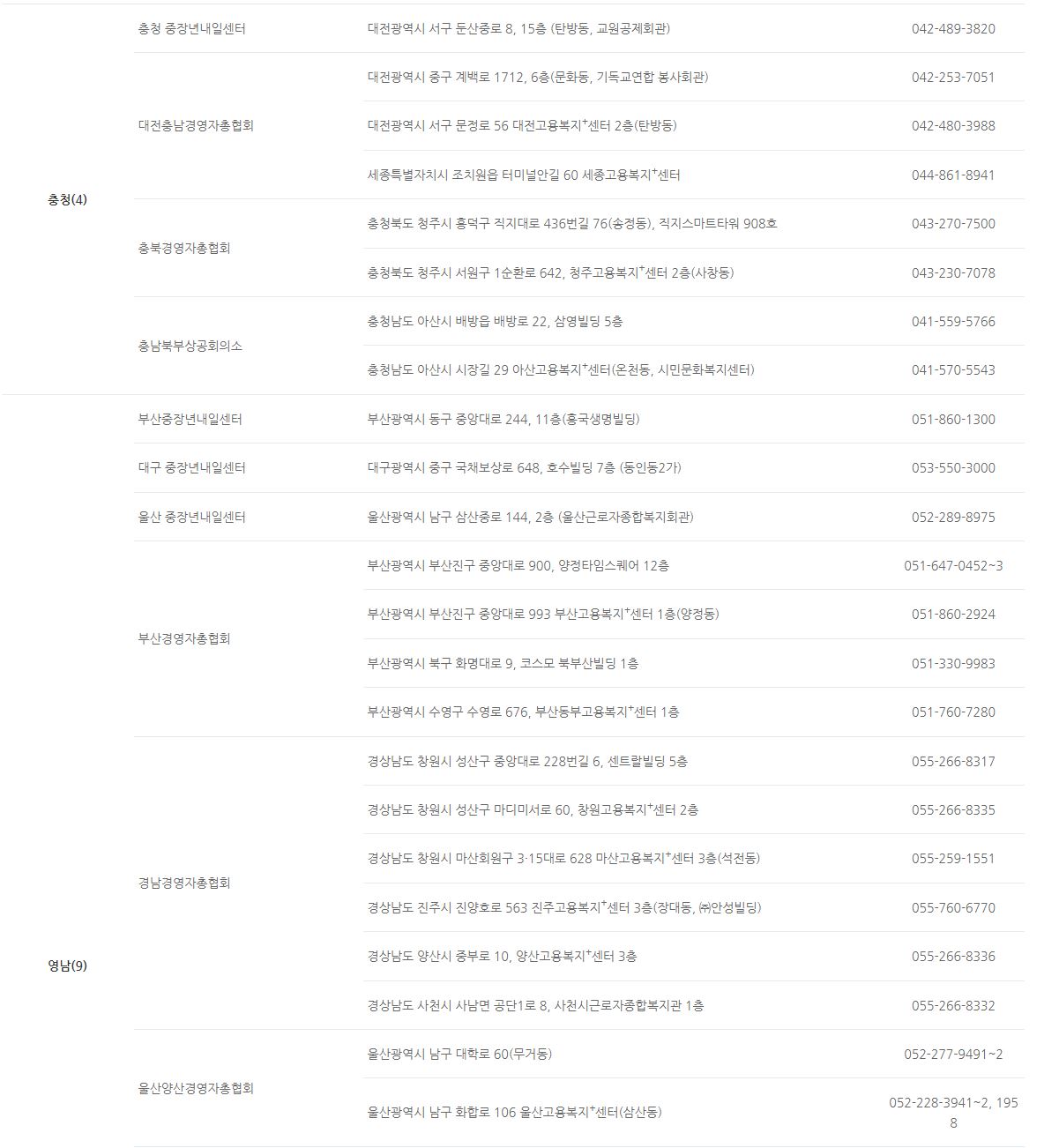 ㆍ구직 중인 사람들을 위한 재시도 지원: 상세 상담, 교육 및 훈련, 취업 및 창업 정보 제공과 함께 취업 알선, 취업 동아리 및 사후 관리 서비스 가능 지방정부 협력 맞춤 서비스(민간 19곳)
